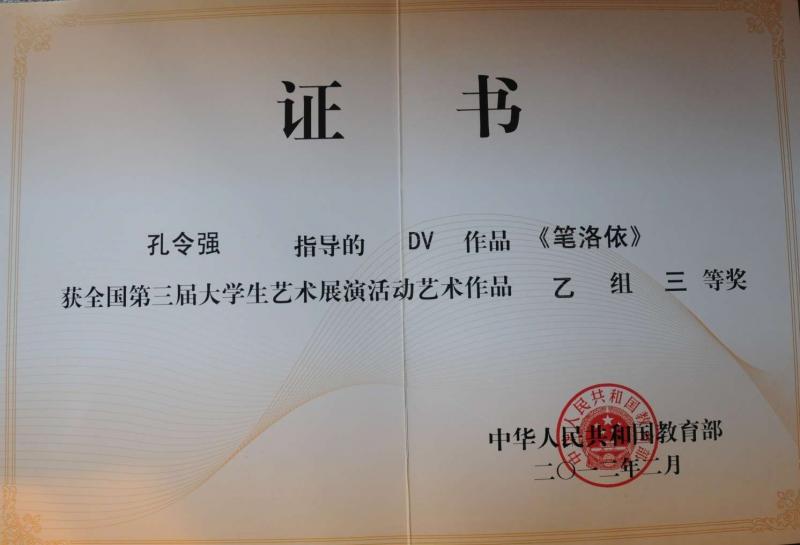 传媒学院DV作品获第三届全国大学生艺术展演三等奖
