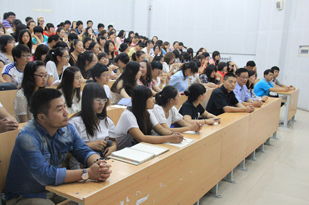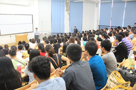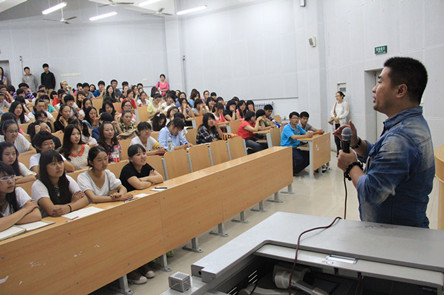 随后,李锦程院长满怀深情地为在座的234位传媒学子送上了诚挚地祝愿与期许。李院长用三句话来概括:你们是全新的;你们是幸运的;你们要有担当。所谓“全新”是指2012级新生是传媒学院招生制度改革后采用全新的招考方式招收的第一批学生,动画专业招生试题首次引进了漫画创意,广播电视编导专业招考增加面试,这在我院的招生中还属首次。因此,学院对于新生的未来充满期待。此外,2012级新生将实行全新的人才培养计划,新生面临着一个新的起点,新的开始。所谓“幸运”指我国当前社会目前正处在大力推进社会主义文化大发展大繁荣的大好时期,我院拥有优秀的师资力量和管理团队,能够培养出社会和国家需要的具有文化开拓精神的创意人才、掌握传媒技术的专业人才等,因此,李院长希望全体新生要把握住当前的大好局面,珍惜时间,努力学习。所谓“担当”则是告诫同学们作为一个传媒人,要具备传媒人所要求的素质,简而言之,就是要有责任感,使命感,要敢于担当。最后,李院长以一个意味深长的小故事作为讲话的结束,让同学们在对故事的回味中深刻体会传媒人的责任与担当。