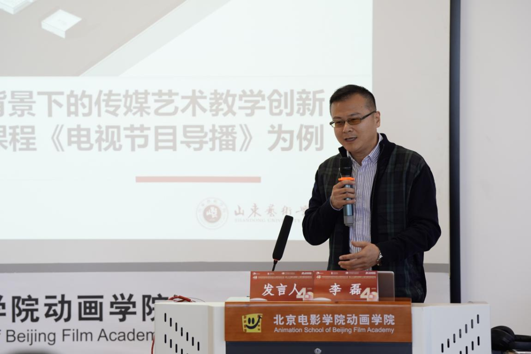 李磊教授在“影视教学与课程建设研究专场论坛”作题为《新文科背景下的传媒艺术教学创新——以国家一流课程电视节目导播为例》的论坛发言。