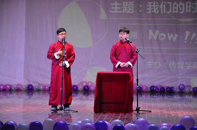 激情点亮元旦,欢乐尽在传媒。12 月 29 日晚,传媒学院在演播厅隆重举行了2015 年元旦晚会。学院各级领导老师与现场近500名学子以及晚会服务人员共同观看了演出,共度了一个美好的夜晚。 2015年元旦晚会以“我们的时代”为主题,流光璀璨,精彩纷呈。18 时 30分,晚会在全院师生参与拍摄的倒计时短片的温情氛围中拉开帷幕。